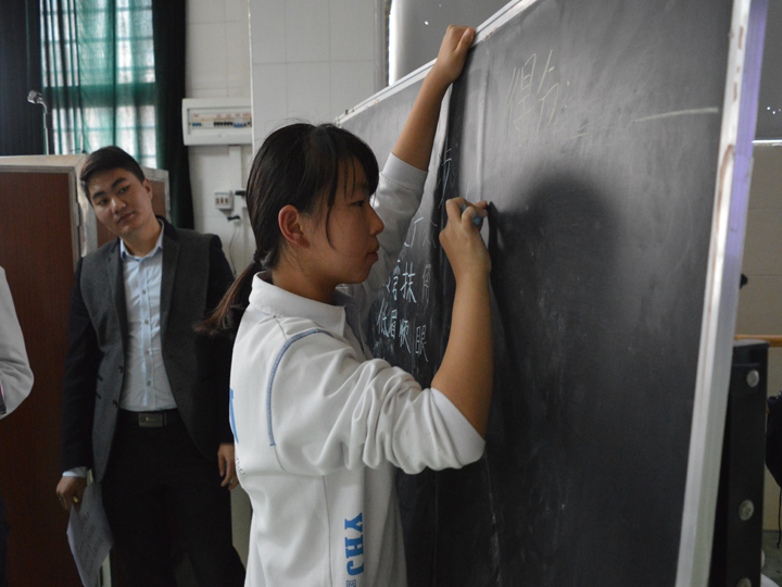 該活動秉承全員參與、公平公正的原則,每位學(xué)生發(fā)放相關(guān)試卷,上場比賽的學(xué)生在黑板上聽寫的同時,在場的學(xué)生通過試卷檢測自己的聽寫質(zhì)量。通過兩個大環(huán)節(jié),每個環(huán)節(jié)三組比賽,寫對一字得一分,累計班級所得分,結(jié)合班級整體賽場紀(jì)律形象分?jǐn)?shù),得出班級最終分?jǐn)?shù)。