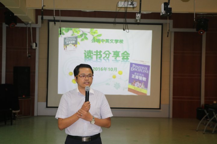2016年10月14日下午5點,在公明中英文學(xué)校報告廳,《正面教育》讀書分享會正式開始。郭蘇陳、周琴、楊柳靜和徐敏紅等四位教師結(jié)合教育實踐,與全體教師分享了正面教育案例。全體教師在靜靜的聆聽中感受著正面教育帶來的力量。