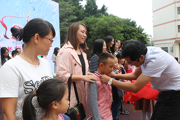 活動(dòng)還特設(shè)了“校園達(dá)人”獎(jiǎng),對(duì)每個(gè)年級(jí)里優(yōu)秀組合和個(gè)人進(jìn)行集體頒獎(jiǎng),評(píng)出“年級(jí)最佳達(dá)人”、“學(xué)校藝術(shù)達(dá)人”、“學(xué)校體育達(dá)人”若干名,并邀請(qǐng)這些達(dá)人的家長(zhǎng)們到校與孩子一起領(lǐng)獎(jiǎng),分三輪由校領(lǐng)導(dǎo)頒發(fā)達(dá)人獎(jiǎng)牌,當(dāng)達(dá)人們與家長(zhǎng)們一起隨音樂(lè)走上紅地毯,全校師生的熱烈掌聲回蕩在整個(gè)校園。