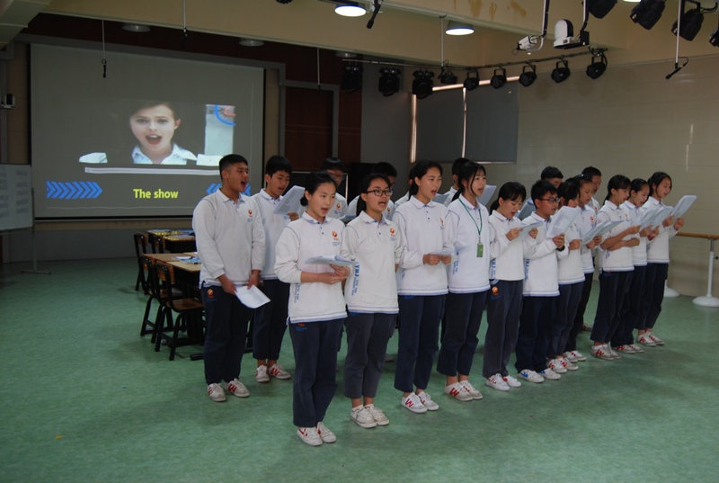 首先,公明中英文學(xué)校國騰老師主講一堂八年級小組合作研討課。課前由7,8年級部分同學(xué)展示了英語歌曲《the show》,孩子們自信的演唱、地道的發(fā)音、優(yōu)美的語調(diào)和歡快的旋律博得老師們陣陣掌聲。