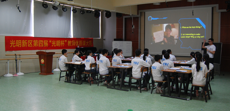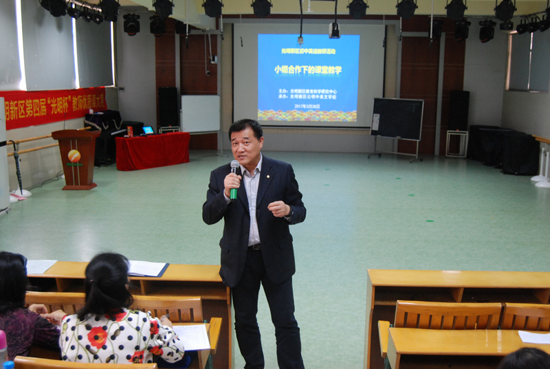 為了進一步落實英語課堂教學(xué)改革,提高新區(qū)實踐英語課堂效率,落實有效教學(xué),3月28日下午,光明新區(qū)教育科學(xué)研究中心在公明中英文學(xué)校舉行初中英語教研活動。本次活動主題為“小組合作下的課堂教學(xué)”,活動內(nèi)容包括公明中英文學(xué)校國騰老師研討課、公明中英文學(xué)校開展“小組合作學(xué)習(xí)”經(jīng)驗介紹和教研員張書生老師點評培訓(xùn)等三個部分。本次教研活動由新區(qū)英語教研員張書生老師主持,全區(qū)初中英語老師參加。
