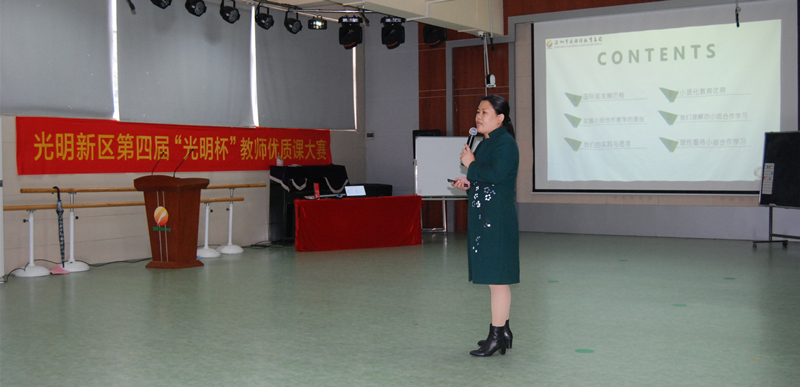 最后新區(qū)教研員張老師對本次研討課進行點評,并對本次活動進行了總結(jié)。張老師高度贊揚了公明中英文學(xué)校小組合作開展的有效性和長期性,并大力倡導(dǎo)新區(qū)各校開展小組合作教學(xué),提高課堂教學(xué)效率。