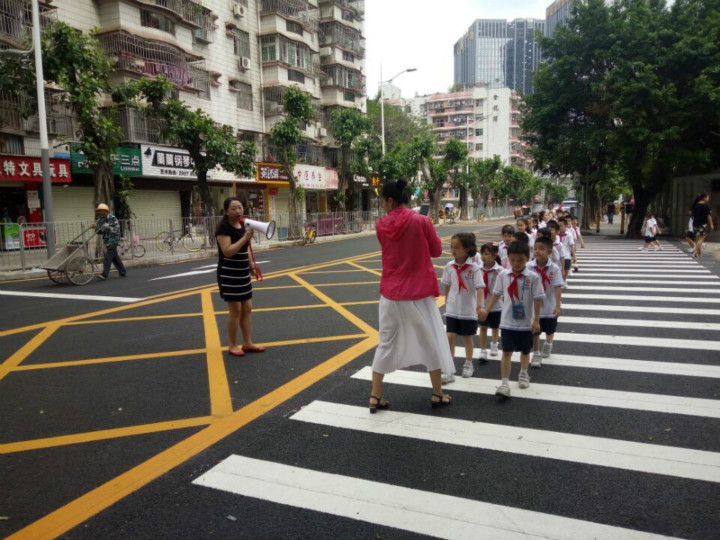 2017年5月19日,深圳市龍華中英文實(shí)驗(yàn)學(xué)校小學(xué)部的班主任老師帶著孩子們,在學(xué)校大門(mén)丁字路口路段上了一節(jié)特別的“交通安全實(shí)踐課”,目的是讓孩子們?cè)谡鎸?shí)的生活情境中認(rèn)識(shí)交通安全標(biāo)識(shí)、學(xué)習(xí)交通安全知識(shí)、掌握安全通行要領(lǐng)、提升生命安全意識(shí)。