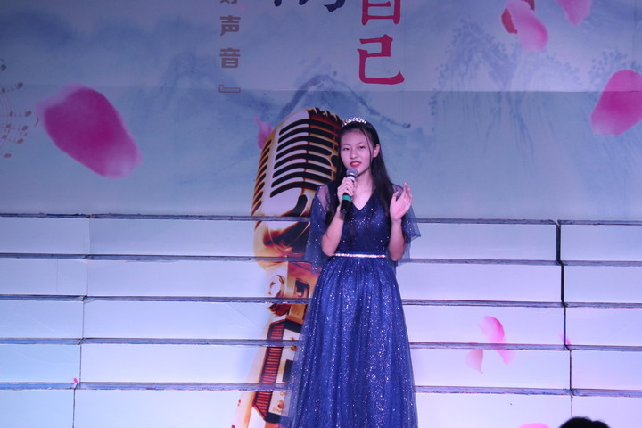 龍華中英文實(shí)驗(yàn)學(xué)校的李樂滋同學(xué)激情演唱《娛樂天空》,臺上的他就像一個發(fā)光體,他就是不斷挑戰(zhàn)自我。