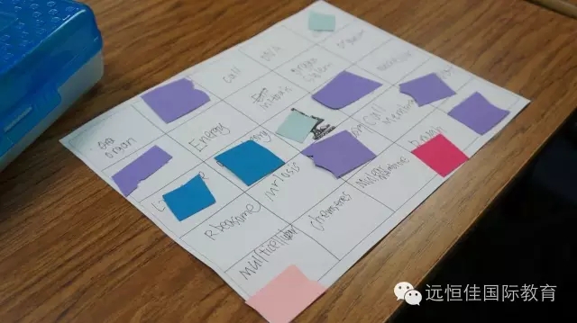 每記住一個單詞就可以把詞蓋住,最先連成五個的同學(xué)就獲勝,并獲得老師的小獎品