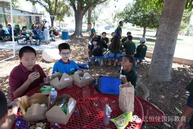學(xué)校上課注重學(xué)術(shù)的同時,也十分注重學(xué)生們體育的素養(yǎng)和體能的培養(yǎng),午間的美國學(xué)校沒有午休時間,午飯休息后,便開始了體育活動時間。在這里,同學(xué)們充分的享受加州的陽光。