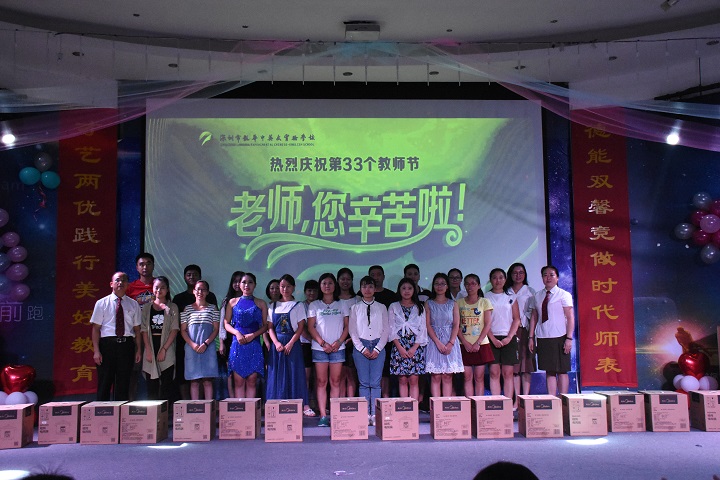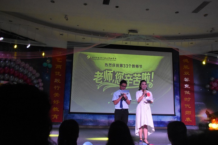 2017年9月8號,深圳市遠恒佳國際教育城攜手龍華中英文實驗學(xué)校舉辦了慶祝第33個教師節(jié)活動,于當(dāng)日晚上19:00正式在龍華校多功能廳舉行,由胡化忠老師及祝啟鳳老師擔(dān)任主持。整場晚會由教育城部分老師以唯美、俏皮、激烈的開場舞拉開帷幕,隨后龍華校情歌王子歐陽新建老師用優(yōu)美、動聽的歌喉將現(xiàn)場聽眾帶入了纏綿悱惻的愛情故事中,抽獎環(huán)節(jié)將現(xiàn)場的活動氣氛帶入到了最高潮,抽獎過程中吶喊聲此起彼伏,每次抽獎都激動人心。各個行政領(lǐng)導(dǎo)班子不甘示弱,以《我們是遠恒佳人,我們共建美好教育》將整場晚會的文化氣韻提升到最高境界,同時表達了“珍惜相伴之緣,揮灑一路有愛;醉心美好教育之夢,追尋幸福永遠”的美好愿景。學(xué)校校辦領(lǐng)導(dǎo)兼主持人的祝啟鳳老師為全體教師進行了一場《生命列車》的游戲互動,正?;迎h(huán)節(jié)得到了集團教育研究院副院長畢國軍博士的大力點贊。最后在學(xué)校小朋友的帶領(lǐng)下,全體師生演唱、表演集團之歌《相伴同行》為晚會拉下序幕!