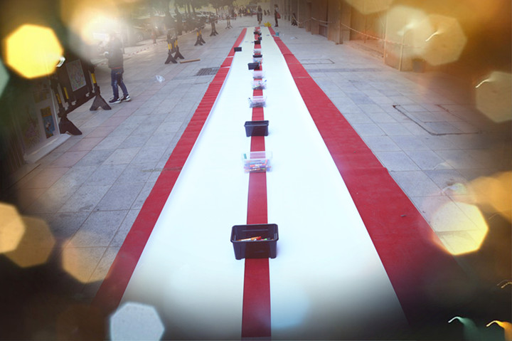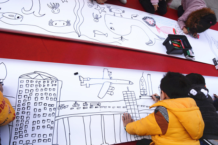 百米畫卷已準(zhǔn)備就緒,就等小朋友們閃亮登場了。