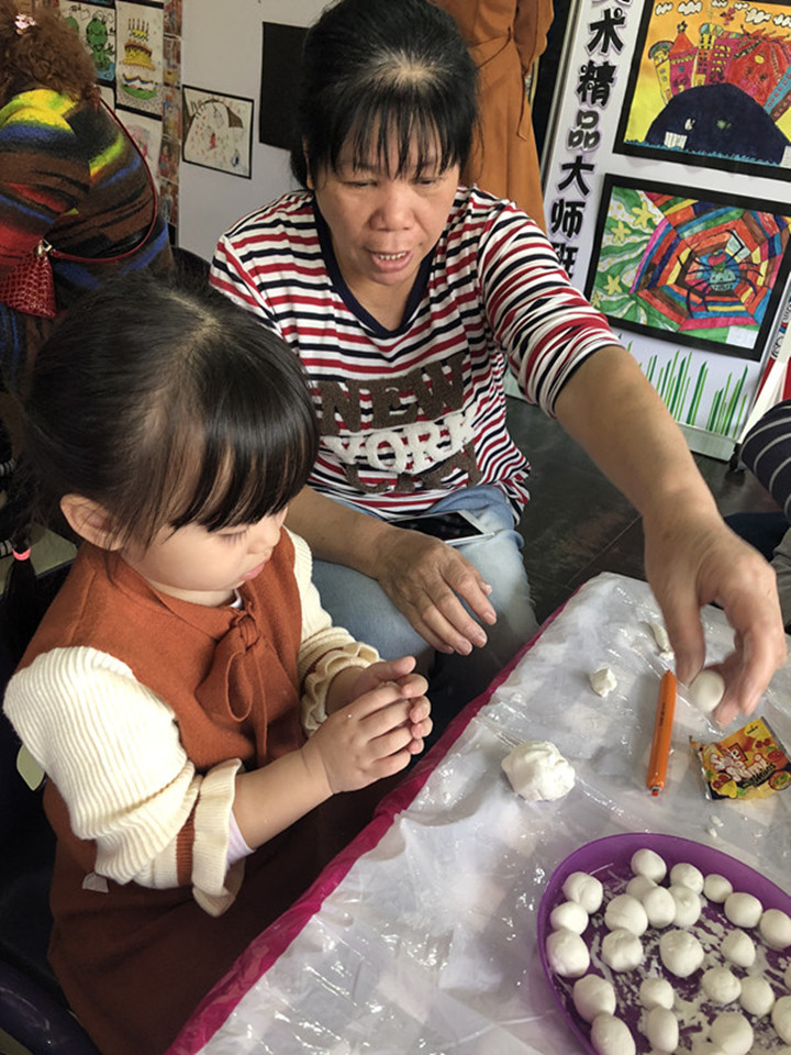 我和爸爸媽媽一起吃元宵。