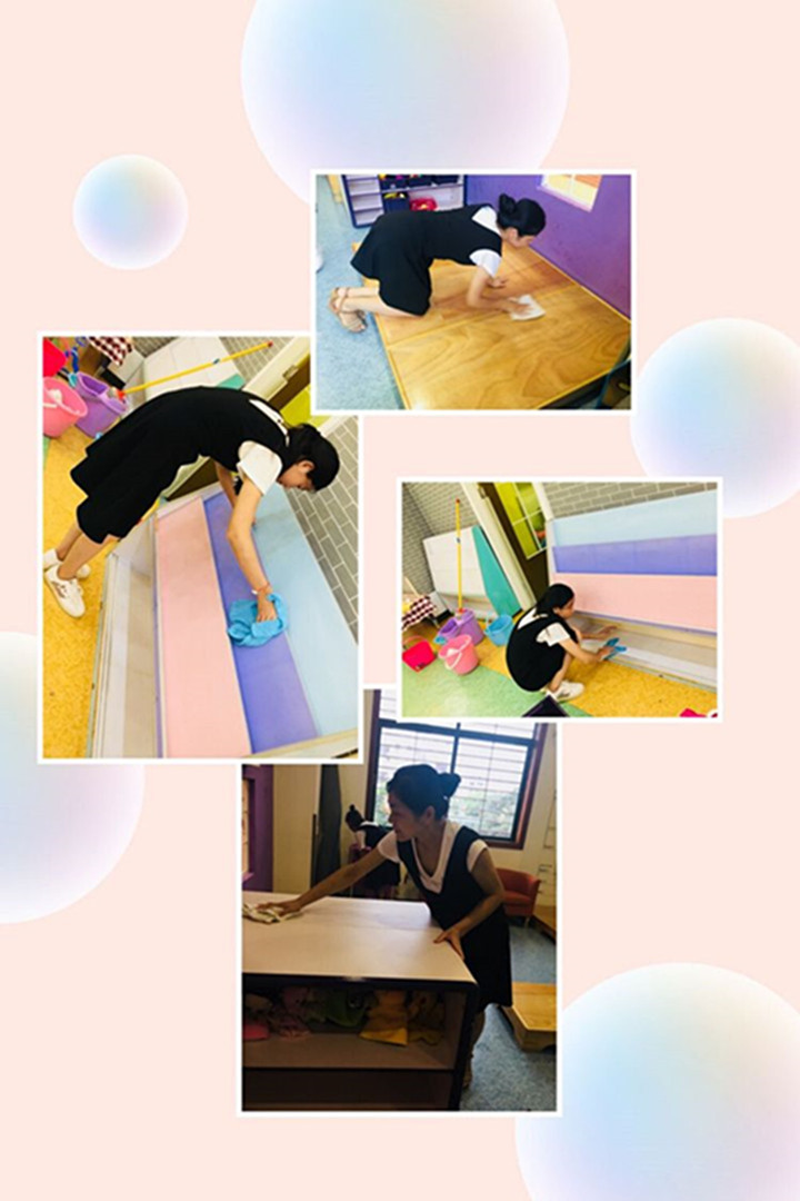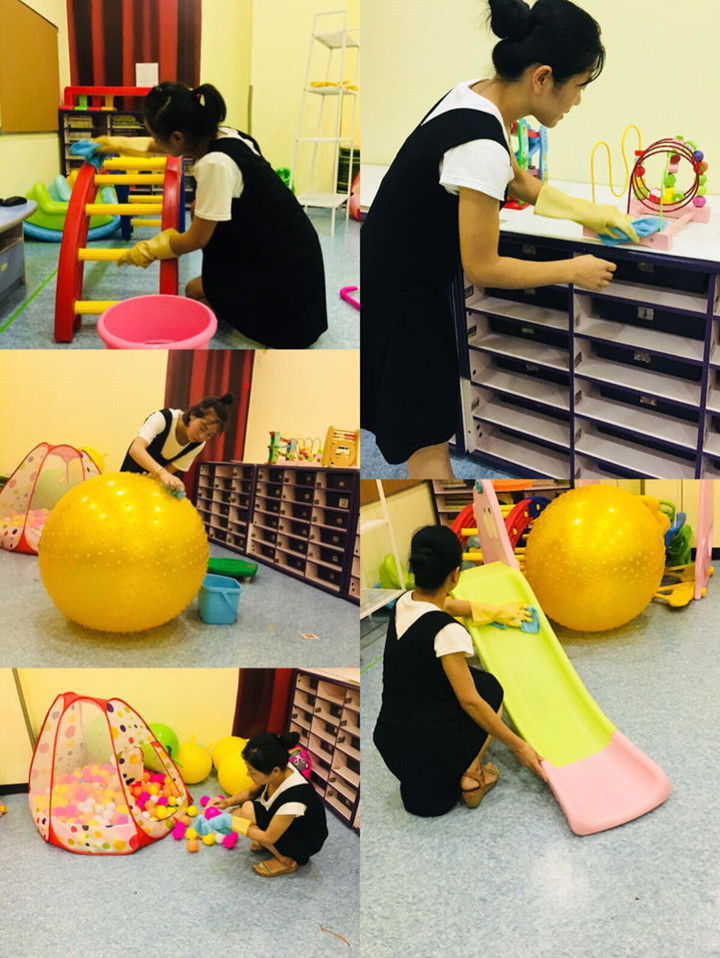 中心是孩子生活與游戲的場(chǎng)所,衛(wèi)生消毒工作是我們衛(wèi)生工作的重點(diǎn)。為了給寶貝們和老師營(yíng)造一個(gè)整潔安全、舒適的環(huán)境,中心建立室內(nèi)外環(huán)境衛(wèi)生清掃和檢查制度,堅(jiān)持每天一小掃,每周一大掃。下面請(qǐng)來(lái)看看我們老師為中心必做的消毒工作吧!