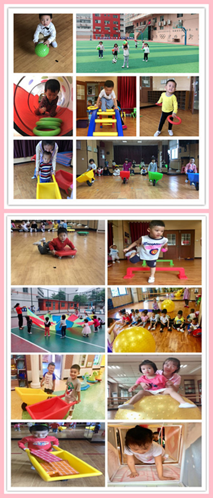 寶貝們?cè)谖覀兊拇蠹∪膺\(yùn)動(dòng)中,玩的好開心呀!剛開始的時(shí)候,都是老師帶著玩,才肯玩,現(xiàn)在都是自己玩,而且要的不亦樂乎!