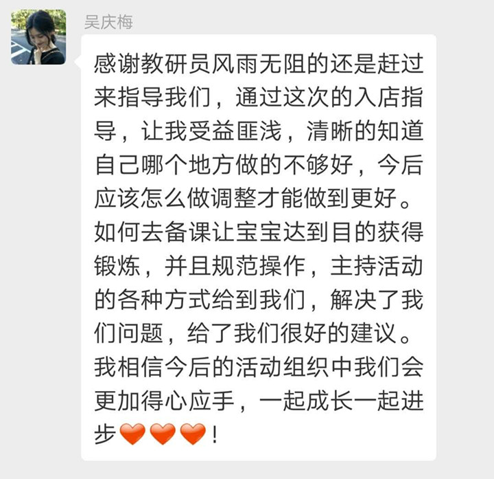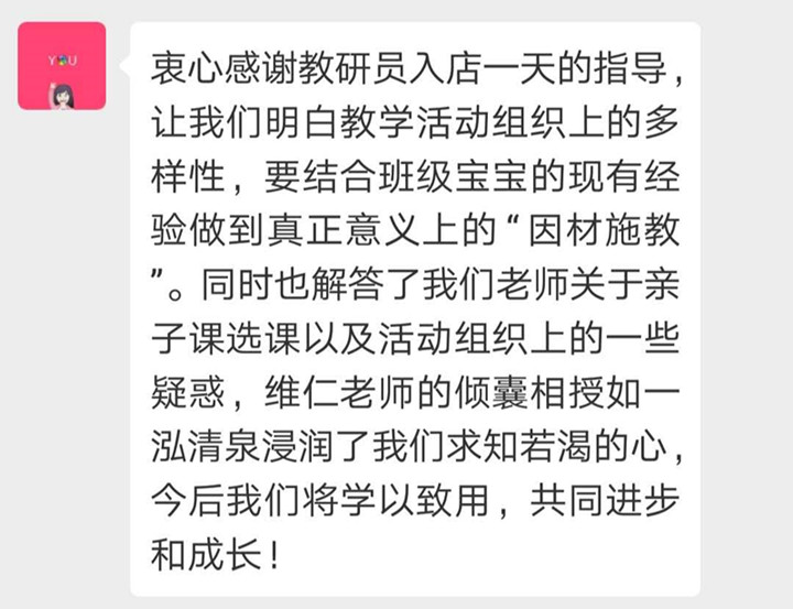 遠(yuǎn)恒佳早教以大眾化、家庭化、國(guó)際化、品牌化為特色,為服務(wù)社區(qū)大眾的嬰幼兒全方位發(fā)展提供良好的成長(zhǎng)條件和環(huán)境,為每一個(gè)孩子的美好人生奠基。致力于培養(yǎng)習(xí)慣好、體質(zhì)強(qiáng)、能力優(yōu)的陽(yáng)光寶貝。做教育,我們不斷研究與時(shí)俱進(jìn)的教育理念,同時(shí)秉持集團(tuán)辦學(xué)宗旨和文化。而支撐一線(xiàn)教育的是集團(tuán)強(qiáng)有力的專(zhuān)家課程研發(fā)團(tuán)隊(duì)及跟崗一線(xiàn)教研的教研員。2019年4月16日,集團(tuán)學(xué)前教育管理中心曾維仁教研員親臨中心教研。