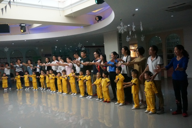 一張張燦爛的笑臉,一雙雙稚嫩的小手,一句句歡快的歌聲,整個(gè)教育城沉浸在一片歡樂(lè)海洋中。