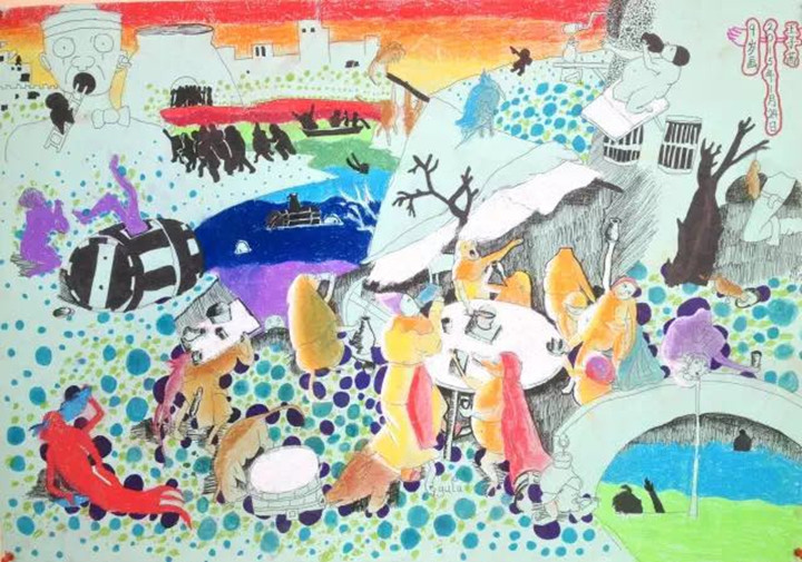 孩子們將自己在感受外物時儲存在腦海里的記憶翻找出來,然后以“稚嫩”“天真”的方式抽象地表達出來。