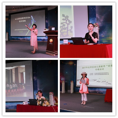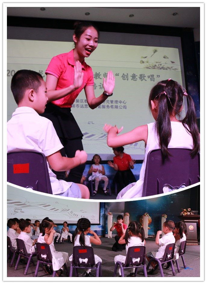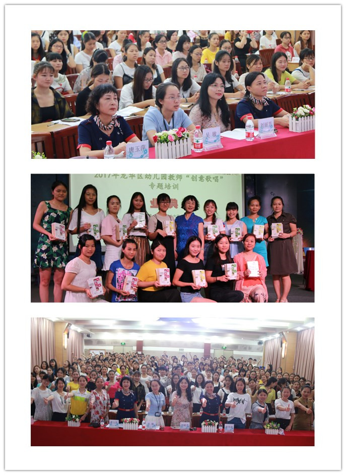 本次培訓(xùn)由龍華區(qū)教育科學(xué)研究管理中心主辦,遠(yuǎn)思明教育培訓(xùn)負(fù)責(zé)組織。全區(qū)四百余名一線幼兒教師參加了培訓(xùn),培訓(xùn)按照街道劃分龍華、觀瀾、觀湖、福城2017年6月6日-9日(三天),民治、大浪21日--23日(三天),共兩場次。培訓(xùn)內(nèi)容囊括幼兒園歌唱活動相關(guān)理論、現(xiàn)場課例觀摩、創(chuàng)意歌唱游戲工作坊、教研交流等,深受老師們的認(rèn)同。通過培訓(xùn)幫助幼兒園教師厘清歌唱活動的內(nèi)涵,了解創(chuàng)意歌唱活動的組織流程,以及創(chuàng)意歌唱活動游戲創(chuàng)編的方法與策略,提升教師對幼兒園創(chuàng)意歌唱活動的設(shè)計與組織能力。
