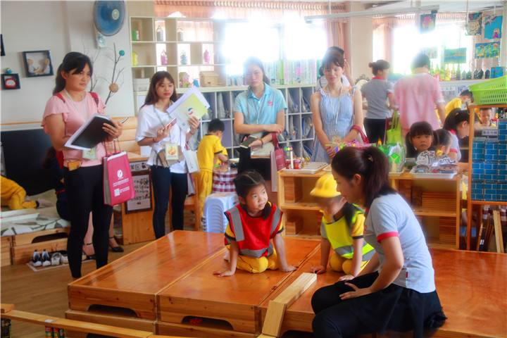 深圳市龍華中英文實(shí)驗(yàn)學(xué)校幼兒園在此次跟崗全園同時(shí)開放,跟崗成員在跟崗之前組成三大組分別進(jìn)入小、中、大班的建構(gòu)區(qū)進(jìn)行觀摩、學(xué)習(xí)。在觀摩中間接引發(fā)思考,帶著問題組內(nèi)討論,組與組之間交流,發(fā)表自己的想法與觀點(diǎn),直接獲取經(jīng)驗(yàn)!