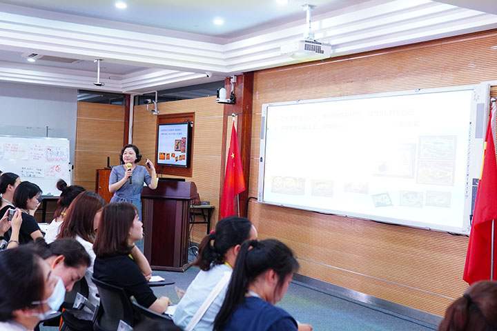 陳麗芬老師從晨談的由來、晨談墻的梳理、晨談內(nèi)容選擇、談話內(nèi)容的設(shè)計等和大家進行了全面及細致的講解,并以生動、具體的事例來幫助教師理解內(nèi)容。