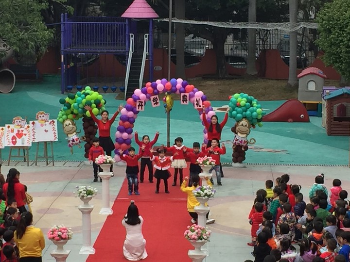 一大早,幼兒園里歡歌喜地,園長和老師們已經(jīng)盛裝打扮,早早地在門口迎接親愛的小朋友和家長們的到來!