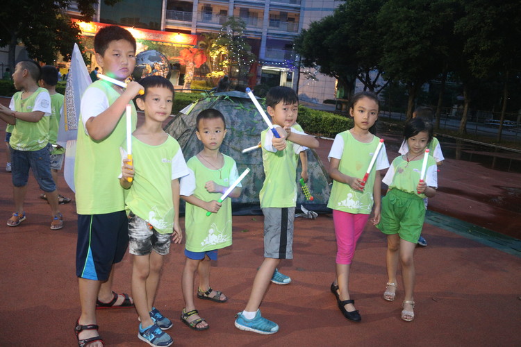 整個(gè)操場(chǎng)霓虹閃耀,小營(yíng)員們興奮而又激動(dòng)地?fù)]動(dòng)著手中五顏六色的熒光棒,開啟了一場(chǎng)驚險(xiǎn)而又刺激的尋旗之旅。