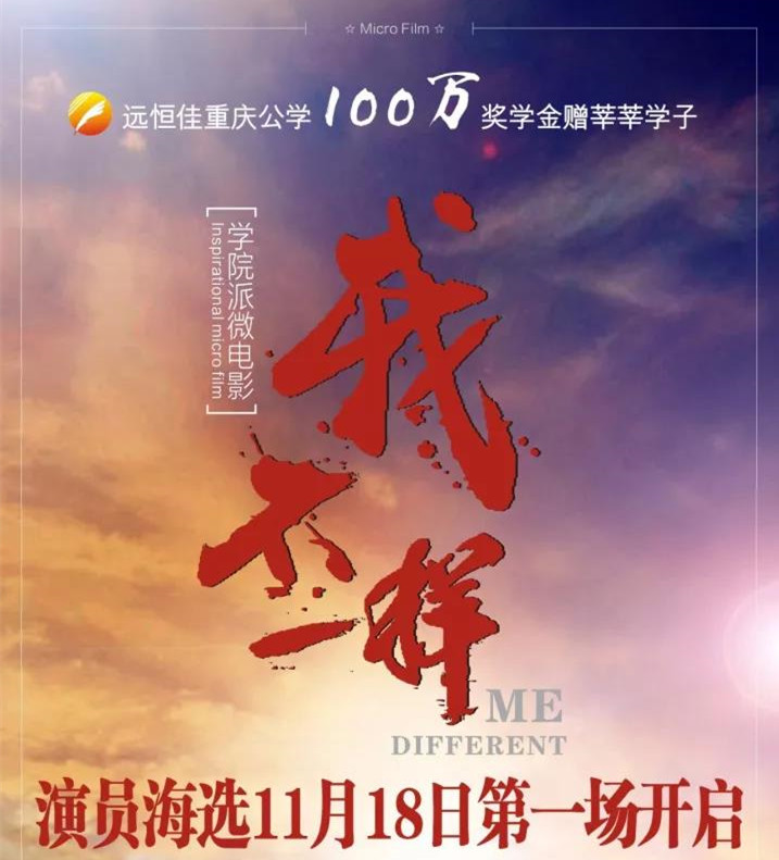 遠(yuǎn)恒佳重慶公學(xué)微電影《我,不一樣》演員海選第一場11月18日即將開啟