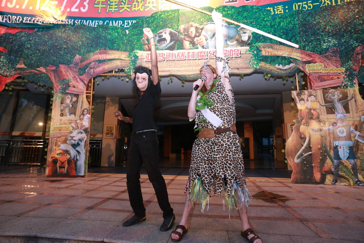 在亞馬遜叢林探險(xiǎn)之篝火晚會(huì)上,備受同學(xué)們喜愛(ài)的外教Keiron(主持人)以一身“Tarzan”(人猿泰山)的裝扮出場(chǎng),獨(dú)特風(fēng)格魅力,并攜帶著“大猩猩”bunbun,吸引了在場(chǎng)所有人的目光。外教們以叢林動(dòng)物裝扮亮相時(shí),活動(dòng)現(xiàn)場(chǎng)響起一陣陣此起彼伏的歡呼聲,伴隨著熊熊燃燒的篝火一次次地將晚會(huì)推向新高潮。