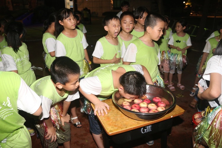 在“亞馬遜叢林探險(xiǎn)之篝火晚會(huì)”主題活動(dòng)中,還有樹(shù)蛙跳跳跳游戲、勇?lián)魠擦止肢F、咬蘋(píng)果、穿越亞馬遜叢林等游戲活動(dòng)。在游戲現(xiàn)場(chǎng),只見(jiàn)營(yíng)員們齊心協(xié)力,小心翼翼地在樹(shù)藤下穿越,圓滿完成了叢林穿梭,還當(dāng)孩子違規(guī)時(shí),叢林怪獸會(huì)把違規(guī)學(xué)生抓進(jìn)山洞。有的營(yíng)員用海綿猛擊叢林怪獸,怪獸被打得哇哇大叫,孩子們樂(lè)在其中,并且在參與中學(xué)會(huì)了合作、增進(jìn)了友誼,增強(qiáng)了團(tuán)隊(duì)合作能力。游戲結(jié)束后,營(yíng)員們欣喜地獲得了許多魔法精靈、勇士勛章與獎(jiǎng)品。