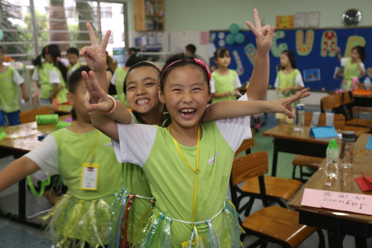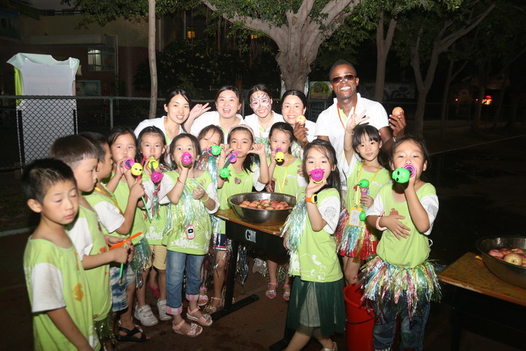為了準(zhǔn)備此次主題活動(dòng),全體教職工們都付出了辛勤的汗水。教師們積極準(zhǔn)備材料,助教們不辭辛苦、加班加點(diǎn)地為全體師生精心趕制草裙300余條,外教Keiron用土豆雕刻出許多叢林印章,藝體教師們?yōu)楹⒆觽冄b扮各種叢林造型的面部彩繪、蓋上叢林印章,為晚會(huì)營(yíng)造了良好的亞馬遜叢林氛圍。