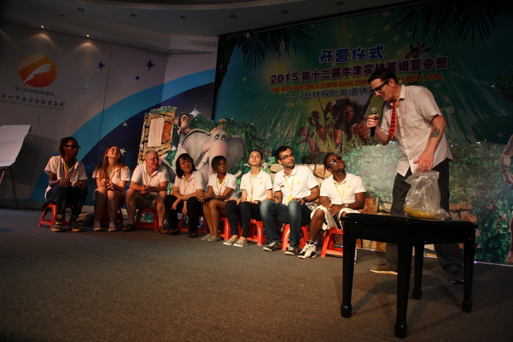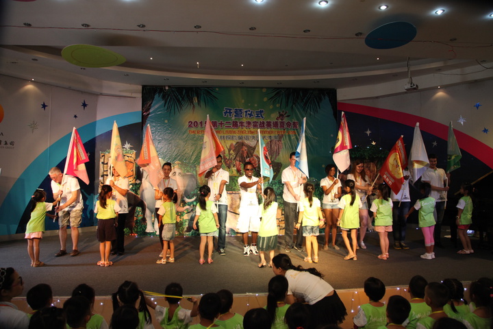 “開(kāi)營(yíng)啦!開(kāi)營(yíng)啦!”2015年7月12日,激動(dòng)人心的第十二屆牛津?qū)崙?zhàn)英語(yǔ)夏令營(yíng)——亞馬遜叢林探險(xiǎn)之旅正式開(kāi)營(yíng)!這里有Jungle Cats(叢林貓班)、Simba(獅子王班)、Jaguars(美洲豹班)、Angry Birds(憤怒的小鳥(niǎo)班)、Phoenix(鳳凰班)、Tarzan(泰山班)、Fruity Bats(水果蝙蝠班)等,瞬間,龍華中英文實(shí)驗(yàn)學(xué)校校區(qū)變成了熱鬧非凡的“亞馬遜叢林”,來(lái)自各校園的233名小營(yíng)員在滿懷期待中即將開(kāi)始一段神秘之旅。
