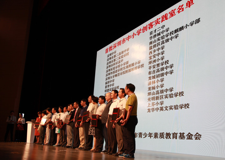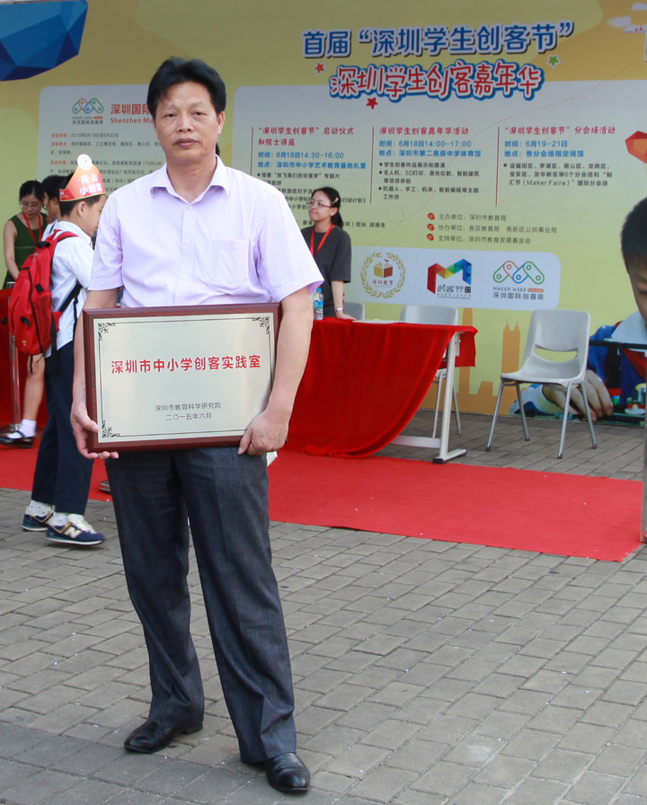 6月18日下午,深圳首屆學(xué)生創(chuàng)客節(jié)啟動(dòng)儀式在市中小學(xué)藝術(shù)教育基地舉行,出席啟動(dòng)儀式的領(lǐng)導(dǎo)有吳以環(huán)副市長(zhǎng)、市教育局郭雨蓉局長(zhǎng)、市教育局范坤副局長(zhǎng)、香港教育局陳嘉琪副秘書長(zhǎng),以及深圳市中小學(xué)師生和香港學(xué)校代表1000多人出席。學(xué)校戴桓標(biāo)校長(zhǎng)參加了首批32個(gè)中小學(xué)創(chuàng)客實(shí)踐室的授牌儀式,并參觀了設(shè)在市中小學(xué)藝術(shù)教育基地和市第二高級(jí)中學(xué)體育館主會(huì)場(chǎng)的22個(gè)創(chuàng)客作品展區(qū),共3000多件作品,感受學(xué)生們的創(chuàng)作思維及能力。首批授牌的實(shí)踐室將得到柴火創(chuàng)客空間和深圳市青少年素質(zhì)教育基金會(huì)的支持,為學(xué)生創(chuàng)新提供平臺(tái)和經(jīng)費(fèi)支持。