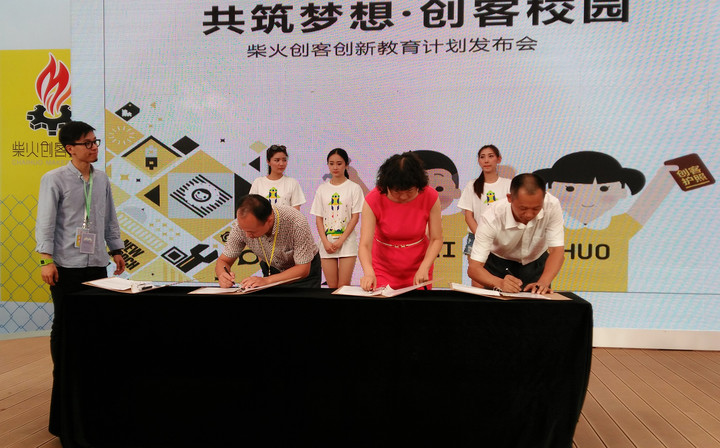 6月19日在深圳市首屆國際創(chuàng)客周以“共筑夢(mèng)想.創(chuàng)客校園”為主題,柴火創(chuàng)客創(chuàng)新教育計(jì)劃發(fā)布會(huì)上學(xué)校創(chuàng)客實(shí)驗(yàn)室負(fù)責(zé)人劉翔飛代表學(xué)校參加了簽約儀式,柴火創(chuàng)新教育計(jì)劃簽約發(fā)布會(huì)也同時(shí)受到了深圳市教育局以及深圳市科技創(chuàng)新委員會(huì)的高度關(guān)注及支持,本次活動(dòng)還邀請(qǐng)到首都公益慈善聯(lián)合會(huì)常務(wù)理事長(zhǎng)朱爾澄、深圳市教育科學(xué)院院長(zhǎng)葉文梓、Arduino創(chuàng)始人Massimo Banzi,深圳實(shí)驗(yàn)學(xué)校小學(xué)部林景武老師和柴火創(chuàng)客空間負(fù)責(zé)人劉得志先生作為致辭嘉賓出席。以及全國40多所中小學(xué)創(chuàng)客實(shí)踐室會(huì)員學(xué)校的領(lǐng)導(dǎo)老師連同逾40位家長(zhǎng)和學(xué)生,也將共同見證這個(gè)意義深遠(yuǎn)的發(fā)布會(huì)。