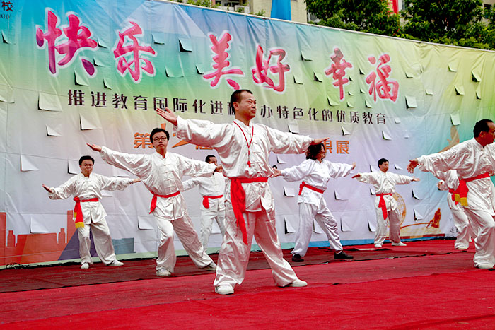 展示活動在師生歡快的開場舞《歌舞樂〈龍的傳人〉》中拉開序幕,活動呈現(xiàn)師生參與面廣、節(jié)目形式多樣、學生參與激情高等特點。