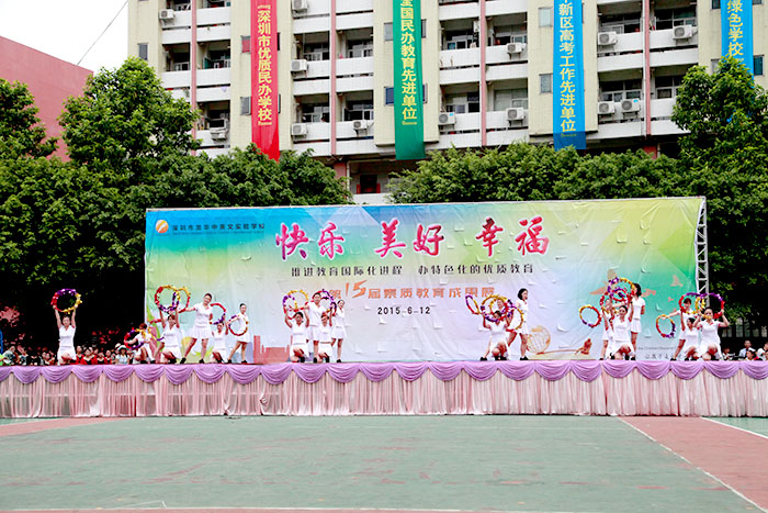 以“快樂、美好、幸福”為主題的龍華中英文實驗學校第十五屆素質教育成果展示活動,于2015年6月12日下午在龍華中英文實驗學校運動場成功舉辦,在全體演職人員的辛勤努力下,展示活動圓滿成功、精彩紛呈,再次彰顯了學校學生“習慣好、能力強、成績優(yōu)”的素質教育特色。