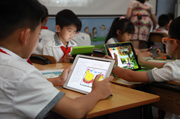 學(xué)生們正在用IPad進行課堂拓展閱讀