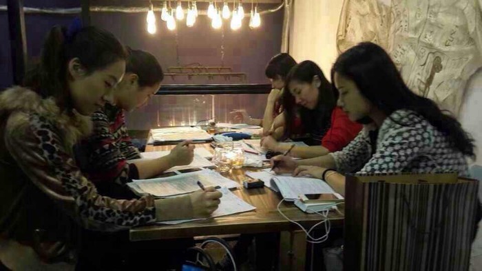 圖為:下班后老師在清吧溫習(xí)的場(chǎng)景。