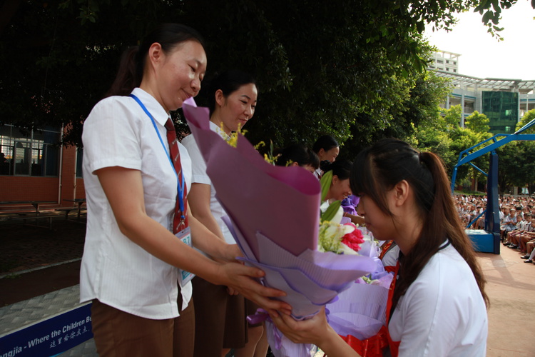 開學(xué)典禮在莊嚴(yán)的升國旗儀式中拉開了序幕,接著進(jìn)行了“教師典型事跡分享”,在上學(xué)期工作中取得優(yōu)異成績的小學(xué)普通部胡秀玲,實(shí)驗(yàn)部馬定云、祝梳妝,藝體組林志香,初中部張?zhí)m香,高中部劉芬等六名老師,作為我校先進(jìn)教師的代表,先進(jìn)事跡在典禮上獲得了分享,在同學(xué)們獻(xiàn)鮮花的活動中,將表彰先進(jìn)和感謝師恩的意愿傳遞給了每一位與會者。