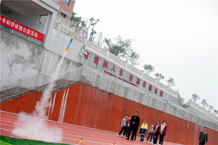 “嗖”“嗖”“嗖”……學(xué)校航模隊(duì)在奧體中心進(jìn)行了火箭發(fā)射表演,一枚枚火箭騰空而起,在天空打開美麗的傘花,在同學(xué)們的歡呼聲中徐徐降落。