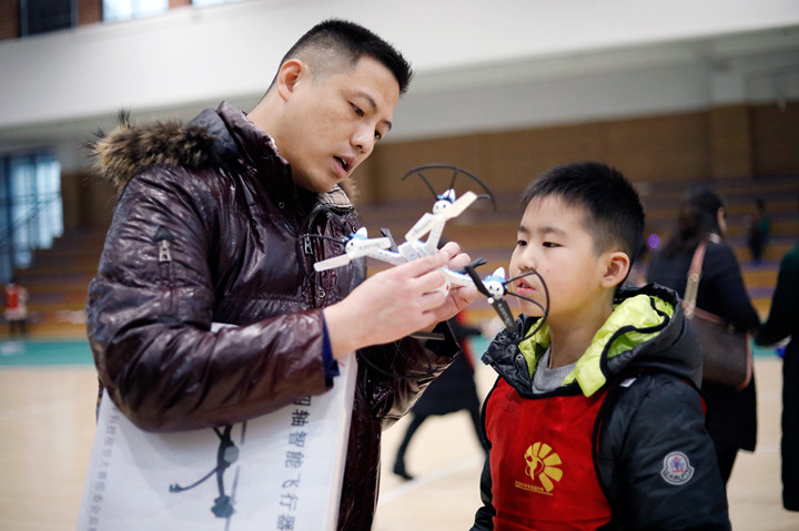 緊跟著起飛的數(shù)架無(wú)人機(jī)又迅速吸引了來(lái)賓的眼球,在航模隊(duì)員的遙控下,無(wú)人機(jī)不斷在同學(xué)們面前飛過(guò),時(shí)而懸停,時(shí)而旋轉(zhuǎn)上升,時(shí)而來(lái)個(gè)漂亮的空滾翻……此起彼伏的喝彩聲響徹天空。