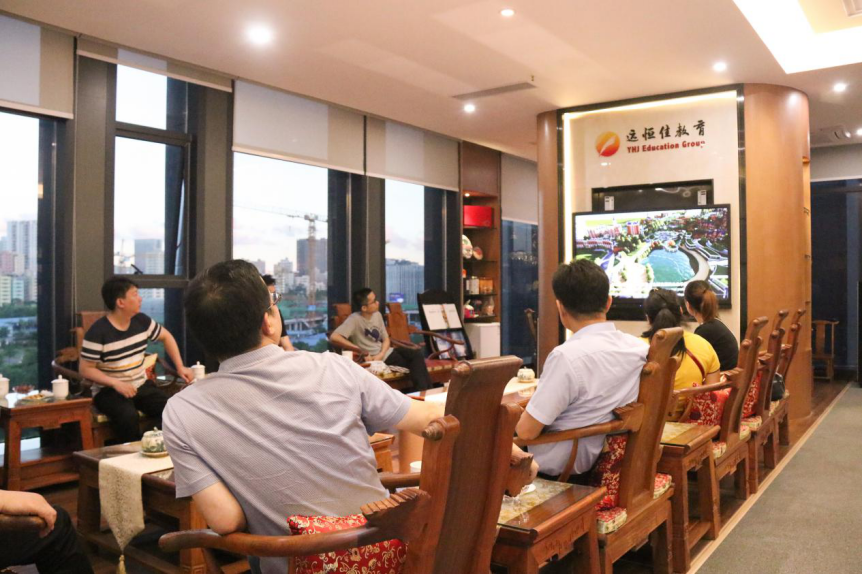 考察團先后參觀考察了位于總部附近的遠恒佳培訓學?!埲A教育城:美術(shù)培訓中心、音樂培訓中心、早教中心,遠恒佳倍得分線上教育平臺研發(fā)中心,國際交流中心,最后來到集團總部參觀并進行座談交流研討。