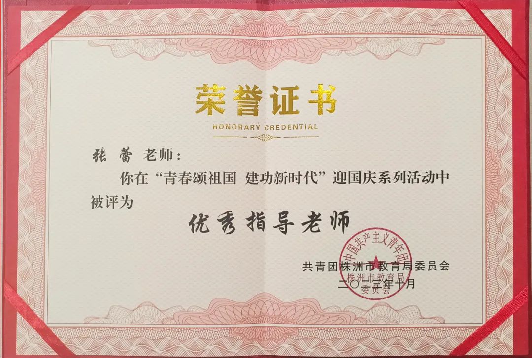 近日,株洲市教育局團委在直屬學校中開展的“青春頌祖國,建功新時代”迎國慶系列活動評比揭曉,我校劉麗娟、蔡沁晨辰、馮柔嘉、范幸鉉、楊雨萱等五名同學的4件作品在“巧手剪紙慶國慶,同心祝福獻祖國”的剪紙比賽活動中分別榮獲高中組一、二、三等獎,美術(shù)老師張蕾被評為優(yōu)秀指導老師。