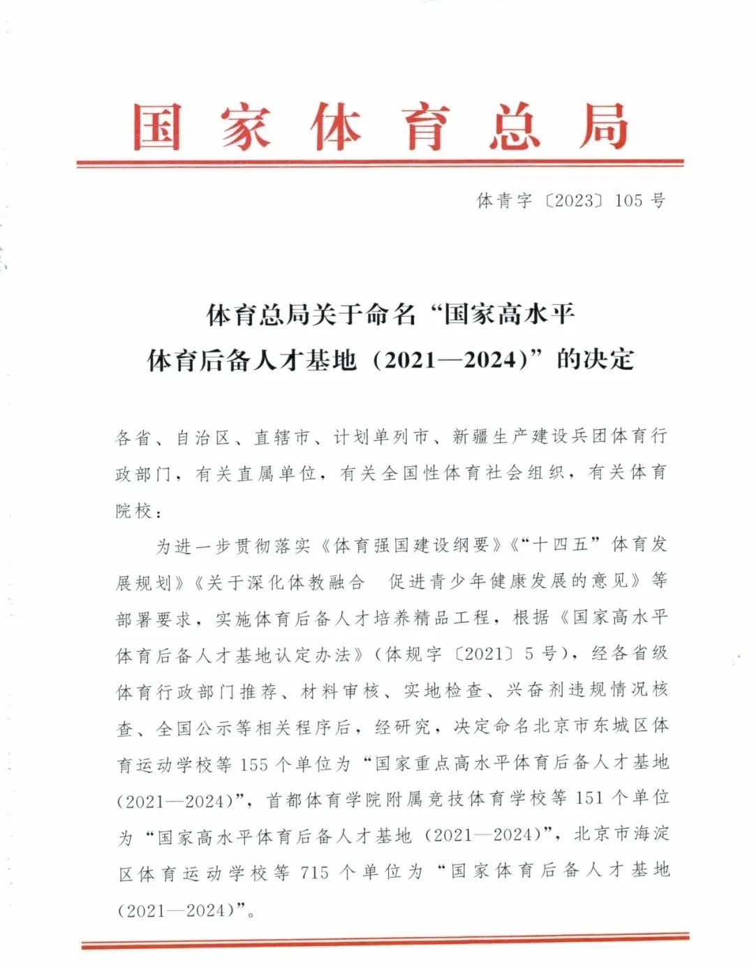 《關(guān)于命名“國(guó)家高水平體育后備人才基地
