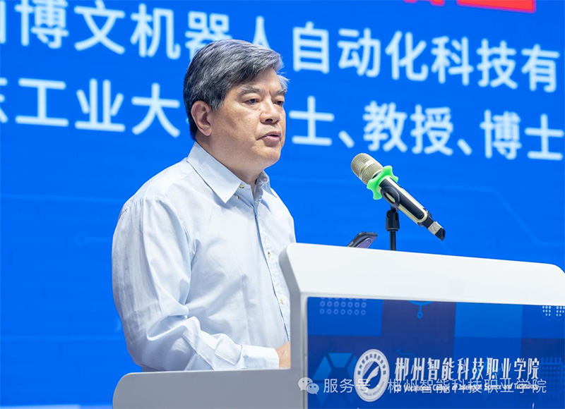 佛山博文機(jī)器人自動(dòng)化科技有限公司董事長(zhǎng)、廣東工業(yè)大學(xué)教授管貽生作為企業(yè)代表發(fā)言,對(duì)與學(xué)院的合作前景充滿信心。
