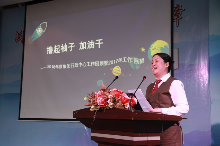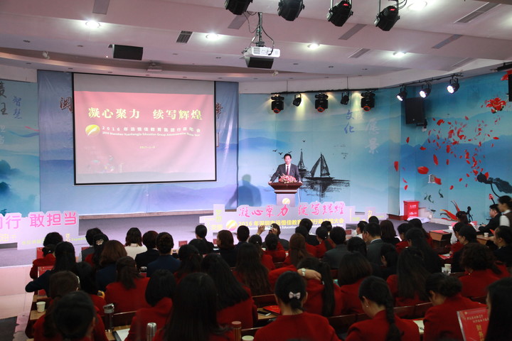 在年會(huì)第一階段,首先由集團(tuán)四大職能部門(mén)、六大辦學(xué)實(shí)體負(fù)責(zé)人分別做2016年工作分享和2017年工作展望;其次,集團(tuán)辦學(xué)人暨董事長(zhǎng)宋遠(yuǎn)標(biāo)先生和副董事長(zhǎng)麥麗芬女士為各單位、各部門(mén)的第一責(zé)任人頒發(fā)集團(tuán)金質(zhì)徽章獎(jiǎng),并作《凝聚力量  贏得時(shí)間》的重要講話(huà)。另外,集團(tuán)還特別邀請(qǐng)到來(lái)自深圳市前海匯豐達(dá)管理有限公司聯(lián)合創(chuàng)始人唐紅兵先生就集團(tuán)未來(lái)發(fā)展、品牌打造規(guī)劃作重要講解。